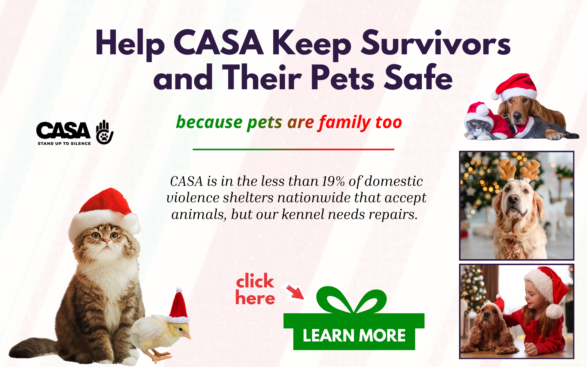 Your donation helps CASA provide services, outreach, counseling, and shelter. CASA serves thousands of survivors of domestic violence in Pinellas County each year.